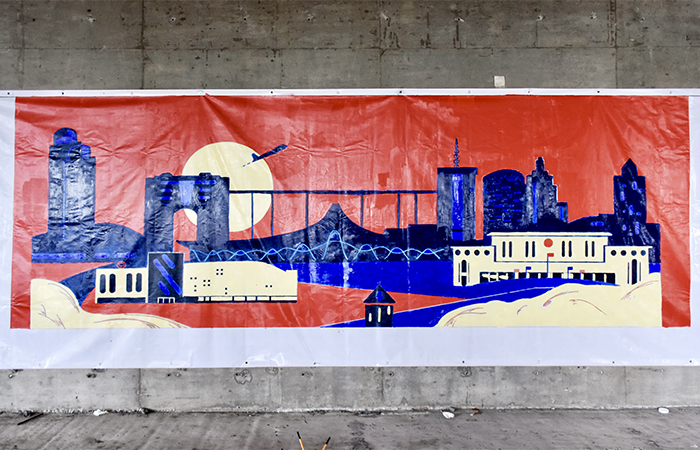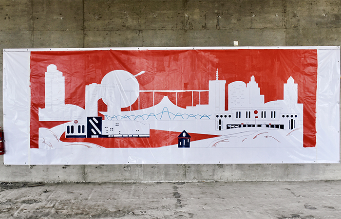下午2點(diǎn),涂鴉活動(dòng)正式開(kāi)始,公司團(tuán)委精心準(zhǔn)備了一幅長(zhǎng)6米寬2米的畫(huà)卷,未上色的白底上,黑色線條勾勒出9座建筑,其中8座展示了公司獲得的8個(gè)魯班獎(jiǎng),余下一座則是興冶廣場(chǎng)項(xiàng)目一標(biāo)段的兩棟高層建筑。