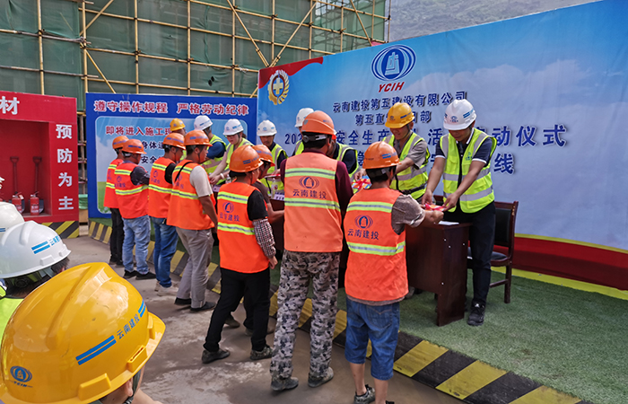 公司安委會副主任劉路明,直管部班子成員、科室負責人、各在建項目的項目經理、安全員、技術負責人和巧家邱家?guī)Z項目部相關管理人員人、各勞務班組代表共計60余人參加啟動儀式。