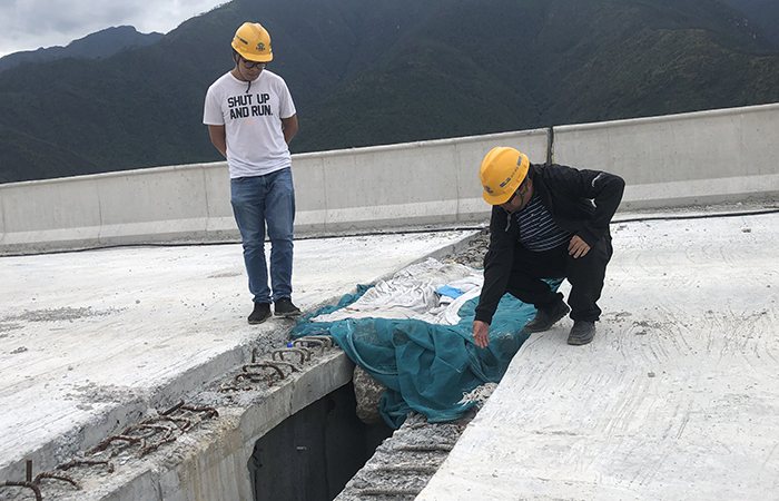 香麗高速古那灣連續(xù)剛構(gòu)橋樁基施工時,因橋址區(qū)地質(zhì)情況復(fù)雜,樁位處地層主要為孤石、漂石且地下水豐富,現(xiàn)場采用了多種樁基作業(yè)方法仍無法正常成孔,塌孔、偏孔等問題頻發(fā)。作為項目技術(shù)擔(dān)當(dāng)?shù)年惏l(fā)文、楊興杰師徒很清楚,剛構(gòu)橋作為香麗高速全線的控制性工程之一,若遲遲無法拿出切實可行的施工方案,全線的施工進(jìn)度將會受到重大影響。背負(fù)著巨大壓力和使命的師徒二人查閱技術(shù)資料、咨詢道橋專家,在施工現(xiàn)場多次進(jìn)行技術(shù)討論,反復(fù)模擬實驗新的施工工藝,終于確定了采用旋挖鉆鉆進(jìn)后澆筑低標(biāo)號混凝土形成護壁后再次鉆進(jìn)的施工方案,有效的消除了橋址區(qū)域塌孔、偏孔等問題,為大橋順利貫通打下了堅實的基礎(chǔ)。