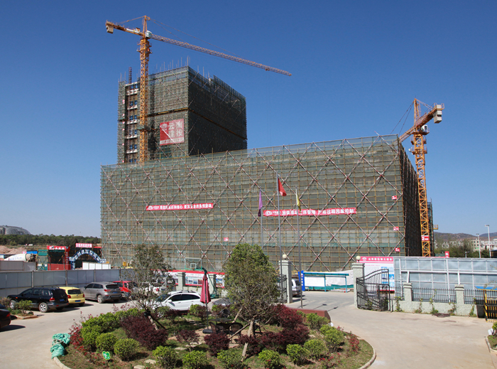 “小心邁步,花草需要您的呵護(hù)”這是項目辦公區(qū)綠地上兩個心形組合提示牌上的標(biāo)語,在五彩的植物間,它顯得尤其可愛清新。除了項目辦公區(qū),施工場地內(nèi)所有裸露區(qū)域均種植了草坪,回填土堆放區(qū)都用廢舊安全網(wǎng)覆蓋。2016年10月項目獲評“云南省建筑業(yè)綠色示范工程”,項目的綠色施工管理可以用“動”與“靜”兩個字來概括。這就不得不提到項目管理人員對噪聲檢測儀、空氣質(zhì)量檢測儀、水質(zhì)檢測設(shè)備和噴淋系統(tǒng)這些“小清新”管理設(shè)備的運用了。