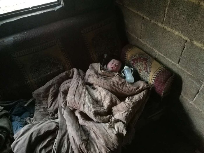 沒來得及洗?我的天哪,這衣服還能穿嗎!當(dāng)時我心里這樣想。這已經(jīng)不能稱之為衣服,用破布來形容似乎更加恰當(dāng),城市里丟棄的衣服都比這個要好百倍千倍。5個月大的女嬰就躺在家中破爛不堪的沙發(fā)上,蓋的被子也是黑黑破破的,她水靈靈的大眼睛看著我們這群陌生人,既不哭也不鬧。同行的女隊(duì)員不禁落淚,因?yàn)樗齻兿胂蟛怀鼍褂羞@樣困難的家庭,這么可憐的孩子。