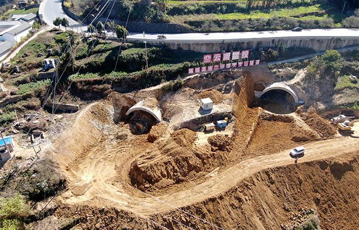 隧道工程:大尖山隧道左幅長1465米,洞身開挖累計(jì)完成1373.6米,仰拱累計(jì)完成1319.9米,二襯累計(jì)完成1232.9米;右幅長1395米,洞身開挖累計(jì)完成1343.2米,仰拱累計(jì)完成1299.4米,二襯累計(jì)完成1212米。