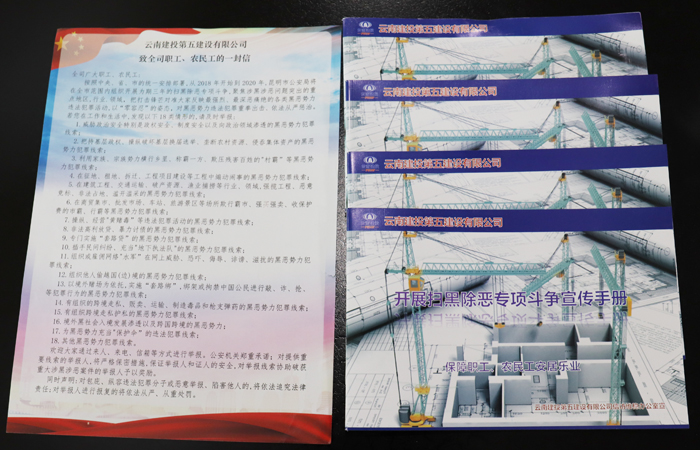 活動(dòng)向參會(huì)人員發(fā)放了《深入開(kāi)展云南省建筑行業(yè)掃黑除惡專(zhuān)項(xiàng)斗爭(zhēng)告知書(shū)》、《云南建投第五建設(shè)有限公司致全司職工、農(nóng)民工的一封信》、《掃黑除惡專(zhuān)項(xiàng)斗爭(zhēng)宣傳手冊(cè)》,結(jié)合建筑行業(yè)實(shí)際,利用PPT向與會(huì)人員講解什么是黑與惡、什么是“軟暴力”、建筑行業(yè)掃黑除惡專(zhuān)項(xiàng)斗爭(zhēng)打擊的重點(diǎn)、建筑行業(yè)重點(diǎn)打擊的10類(lèi)行為等內(nèi)容,要求直三黨支部按照公司黨委要求,認(rèn)真開(kāi)展好“六個(gè)一活動(dòng)”(開(kāi)展一次支部主題黨日、舉辦一次主題宣講、組織一輪法律咨詢、發(fā)放一封公開(kāi)信、推送一批信息、上報(bào)一批舉報(bào)線索),懸掛、張貼宣傳標(biāo)語(yǔ)、海報(bào),積極向直管部干部職工和農(nóng)民工宣講掃黑除惡專(zhuān)項(xiàng)斗爭(zhēng)知識(shí),提高廣大職工與農(nóng)民工對(duì)掃黑除惡的知曉度和參與度。