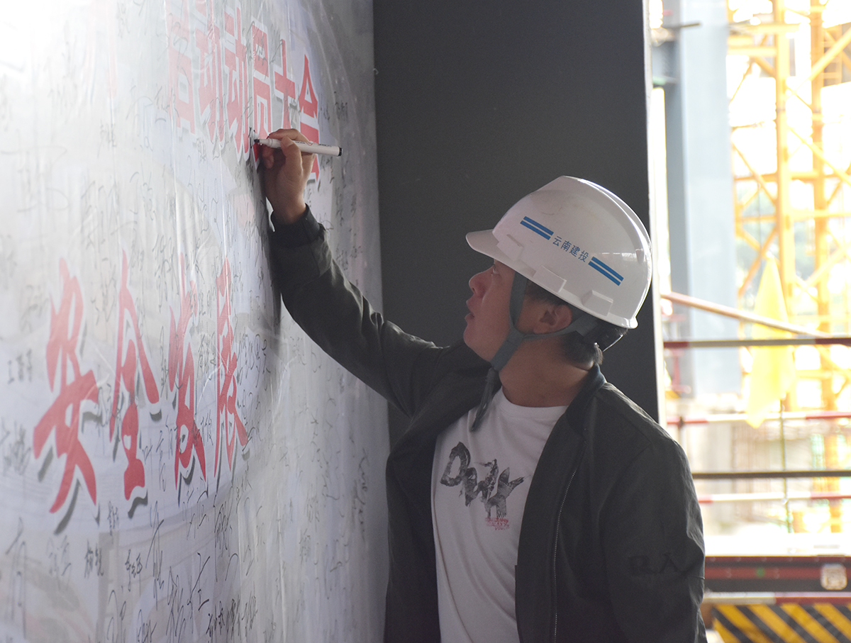 所有參會(huì)人員在安全生產(chǎn)月簽到墻上鄭重簽字,出席會(huì)議的領(lǐng)導(dǎo)為農(nóng)民工班組發(fā)放了安全知識(shí)讀本。當(dāng)天下午,公司各基層單位經(jīng)理、黨支部書記在公司安全生產(chǎn)部的帶領(lǐng)下參觀了四公司云璽城市花園A1地塊三期項(xiàng)目,借鑒安全文化建設(shè)。