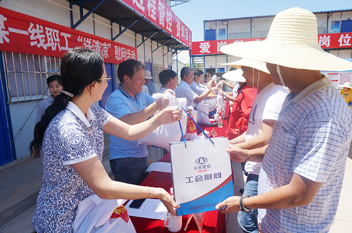 楊金為公司元謀片區(qū)一線職工送上防暑降溫物品,將清涼和關(guān)懷送到一線,讓一線職工清爽度夏。他說,集團工會帶著集團兩級黨政領(lǐng)導(dǎo)班子的無限關(guān)懷,前往一線看望慰問大家,希望大家能夠安心工作,在項目建設(shè)中奮力掀起比、學(xué)、趕、超的干事熱潮,助推集團早日邁進世界500強。