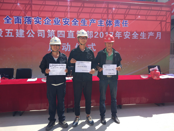 啟動(dòng)儀式上,直管部安全總監(jiān)宣讀了《云南建投第五建設(shè)有限公司第四直管部2017年“安全生產(chǎn)月”活動(dòng)方案》,直管部黨支部、工會(huì)和團(tuán)支部還同時(shí)啟動(dòng)了“青年安全和產(chǎn)示范崗”創(chuàng)建評(píng)比活動(dòng),勞務(wù)班組作業(yè)人員代表、項(xiàng)目經(jīng)理作了安全生產(chǎn)宣誓并承諾,與會(huì)領(lǐng)導(dǎo)為各項(xiàng)目部及班組發(fā)放了安全生產(chǎn)宣傳資料及“送清涼”的防暑藥品,將直管部的關(guān)心帶到施工一線,為廣大一線員工帶來(lái)清涼。