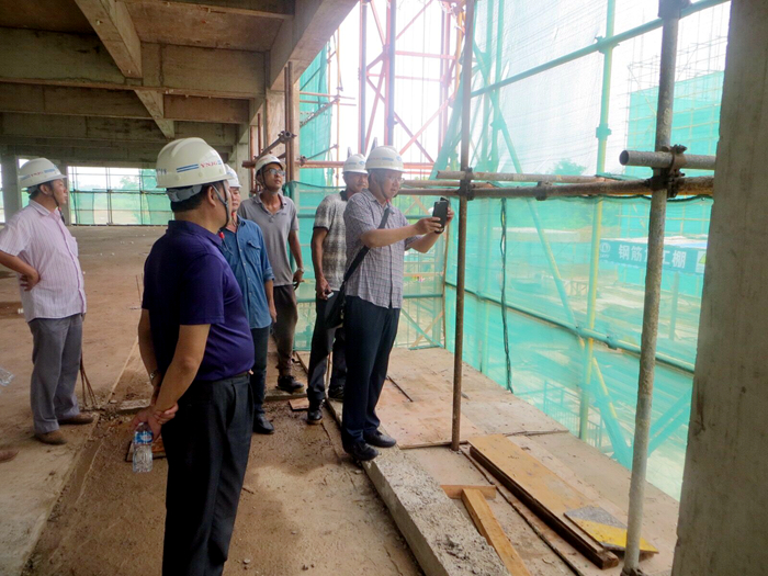 段益慶一行察看了施工現(xiàn)場,聽取了項目建設(shè)過程中的安全管理、文明施工、模板支架、物料提升機、施工用電等方面的安全檢查匯報,了解了項目安全生產(chǎn)基礎(chǔ)工作,并對項目在樓層臨邊防護、物料提升機防護設(shè)置等方面給予了意見及建議。段益慶對項目安全生產(chǎn)工作給予了充分肯定,并強調(diào),該項目屬于境外工程,更要加強安全生產(chǎn)管理工作,整體提高安全生產(chǎn)意識,充分認識安全生產(chǎn)工作的重要性,保證項目的順利施工。