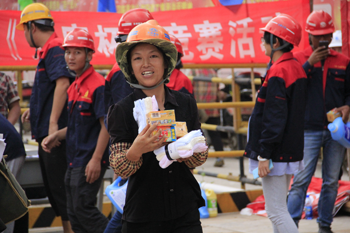海源財(cái)富中心項(xiàng)目部采用競賽方式,以班組為團(tuán)隊(duì),設(shè)有4個(gè)評委,設(shè)置一、二、三等獎,共組織了管理人員、木工班組、混凝土班組、鋼筋班組、架子工班組、材料工等6個(gè)團(tuán)隊(duì)參加,每個(gè)團(tuán)隊(duì)15人;天威云變項(xiàng)目部則采取有獎問答方式舉行。兩個(gè)項(xiàng)目部共計(jì)146人賽,共發(fā)放了280份獎品。活動現(xiàn)場氣氛活躍,反響熱烈,為直管部進(jìn)一步推動“普及法律知識、強(qiáng)化維權(quán)意識,促進(jìn)和諧發(fā)展”及進(jìn)一步提升施工現(xiàn)場人員的安全素質(zhì),營造良好的安全發(fā)展環(huán)境氛圍提供正能量。