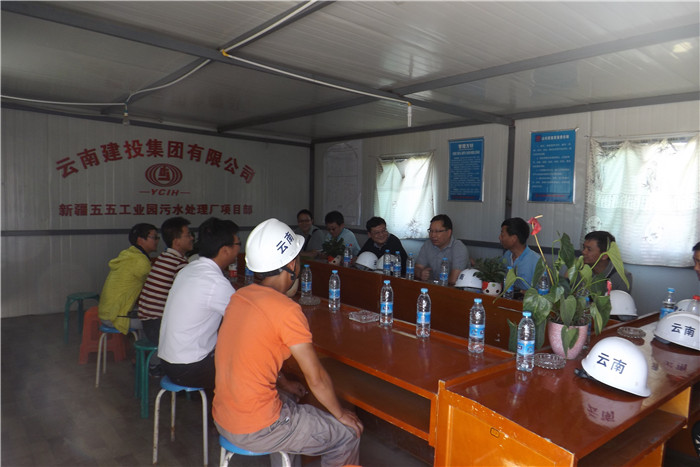 2016年7月4日上午,集團(tuán)公司總經(jīng)理劉國(guó)強(qiáng)等領(lǐng)導(dǎo)到第九直管項(xiàng)目部負(fù)責(zé)施工的新疆五五工業(yè)園區(qū)污水處理廠一期EPC總承包項(xiàng)目進(jìn)行視察指導(dǎo)工作。