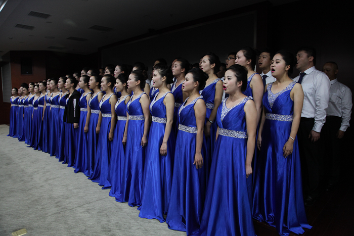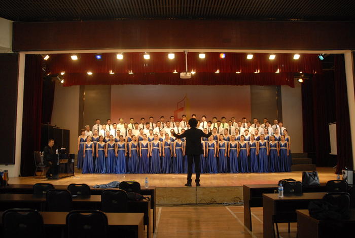 6月1日,公司召集了各基層單位員工85人進行淘汰式培訓,共計淘汰20余人。6月2日,經(jīng)過層層增補及篩選,最終確定80人組成合唱團參加比賽。合唱團利用周末及工作日下班后晚7點至9點的時間進行訓練。合唱團分四個聲部先進行單獨訓練,待熟練之后再合起來一起訓練。6月21日,在集團歌詠比賽復(fù)賽中,公司合唱團從29家單位中脫穎而出順利進入決賽,進入決賽的單位共計12家。