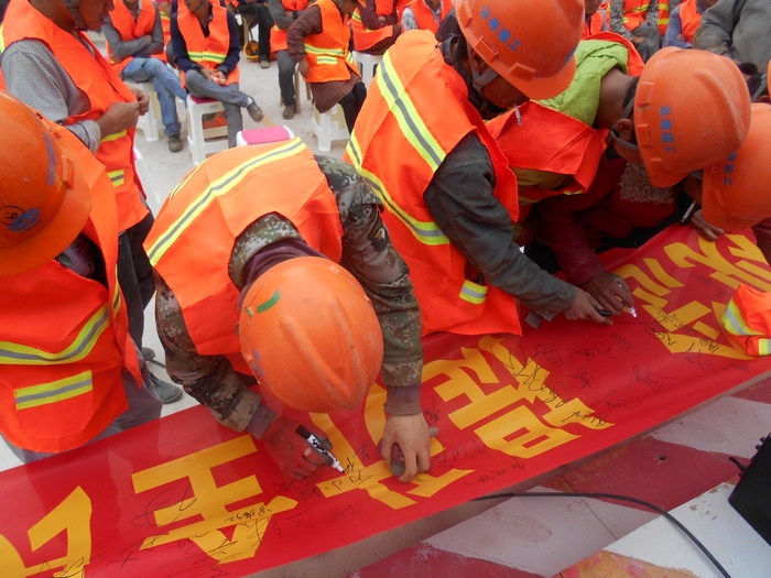 在啟動(dòng)儀式上,直管部黨支部書(shū)記還帶領(lǐng)全體人員對(duì)2016年安全生產(chǎn)月主題詞進(jìn)行宣誓,全面拉開(kāi)直管部“安全生產(chǎn)月”活動(dòng)序幕。直管部要求教育和引導(dǎo)全體員工樹(shù)立安全發(fā)展觀念,堅(jiān)守安全生產(chǎn)紅線,落實(shí)安全生產(chǎn)責(zé)任。直管部領(lǐng)導(dǎo)和項(xiàng)目經(jīng)理要以身作則,從管理人員到班組人員都要促進(jìn)安全管理工作,確保安全生產(chǎn)。