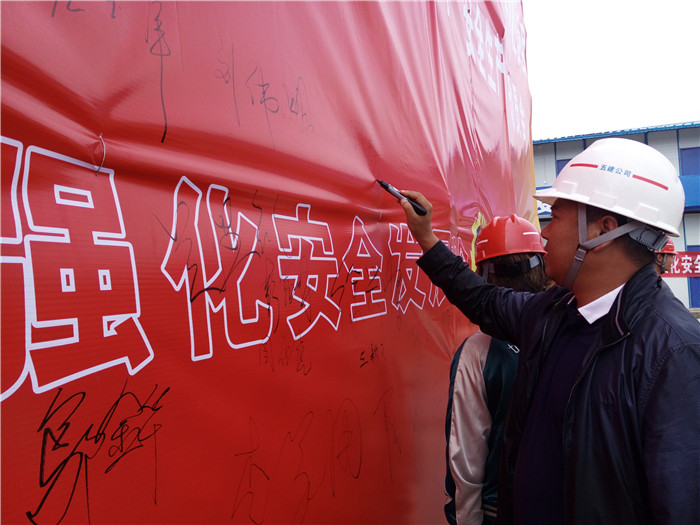 動員會由第九直管項目部項目經(jīng)理方云波主持,五〇七直管項目部經(jīng)理王國泰對開展“安全生產(chǎn)月”作了動員講話,項目安全總監(jiān)強調(diào)了安全生產(chǎn)方面的主要要求。對提出的要求,勞務班組代表在會上作了安全施工承諾。啟動會現(xiàn)場發(fā)放了宣傳手冊30多本。項目部提出在6月13日進行外架坍塌的應急演練。