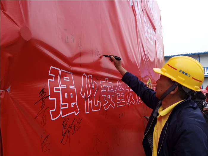 動員會后所有參會人員在安全布標和倡議書上簽字,項目部還組織了項目班組人員在會議室觀看了安全教育片《痛思》。