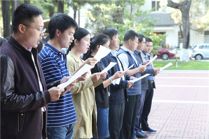 4月21日云南省建設(shè)投資控股集團有限公司成立,在成立大會上《建投之歌》唱響了新篇章。在這之前,公司利用QQ群等方式發(fā)布了《建投之歌》的音頻和歌詞供大家自學(xué)傳唱,并推薦了兩名在唱歌比賽中取得優(yōu)異成績的員工參加集團合唱排練。在公司發(fā)出學(xué)唱《建投之歌》的通知后,有的同事將歌詞打印出來,貼在醒目的位置。黨委工作部給每一個黨務(wù)學(xué)習(xí)臺新?lián)Q了印有《建投之歌》歌詞的內(nèi)頁。公司食堂午餐時間循環(huán)播放《建投之歌》。午休時,有的辦公室里傳來了《建投之歌》的歌聲,原來是有的同事瀏覽著公司發(fā)布的微信圖文在跟唱?!督ㄍ吨琛芬粫r間成為了公司的流行歌,不經(jīng)意間就有同事在哼唱歌曲的旋律。