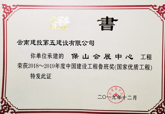 恰是歲末逢佳音,魯班國優(yōu)攬入懷。在12月8日和10日中施協(xié)、中建協(xié)分別組織召開的國家優(yōu)質(zhì)工程獎、魯班獎表彰大會上,公司承建的騰沖永興財富中心榮獲2018—2019年度國家優(yōu)質(zhì)工程獎,保山會展中心榮獲2018—2019年度中國建設(shè)工程魯班獎。公司總工程師陳芝軒代表公司上臺領(lǐng)獎,為公司捧回魯班獎小金人和國優(yōu)獎。