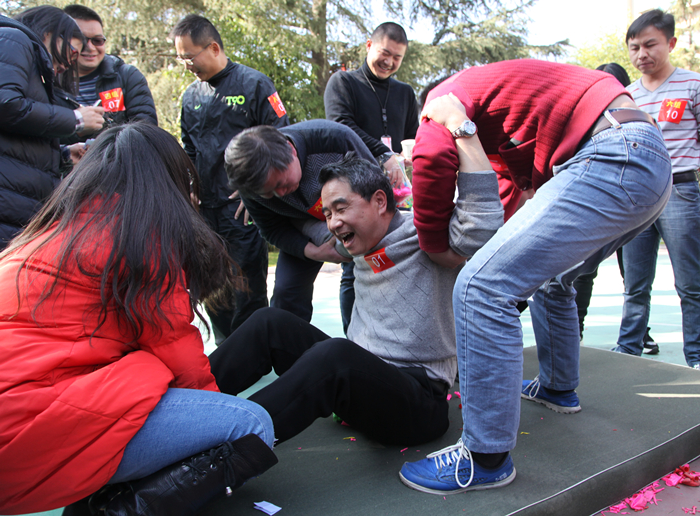 大家分成9組,由公司領(lǐng)導(dǎo)擔(dān)任組長,帶領(lǐng)大家一起完成了“買菜”“跳大繩”“三人兩足接力”“合力吹氣球”“歡樂大合照”等游戲。“買菜”游戲中大家手拉手圍成圈聚精匯神地等待主持人發(fā)出指令;在“跳大繩”中,在繩頭兩端的小伙伴,拼盡全力只為跳得更高;“三人兩足接力”考驗的是大家的默契度和協(xié)調(diào)性,“一二”“一二”……有的隊健步如飛;讓人小小尷尬的“合力吹氣球”卻成了本場的亮點,大家放下工作中嚴(yán)肅的樣子,激烈又搞笑的游戲,引得各隊駐足觀看,笑聲不斷;隨著“一二三”的指令,每個小組一起面帶笑容地跳躍起來,壓軸的“歡樂大合照”記錄下了各隊的精彩瞬間。
