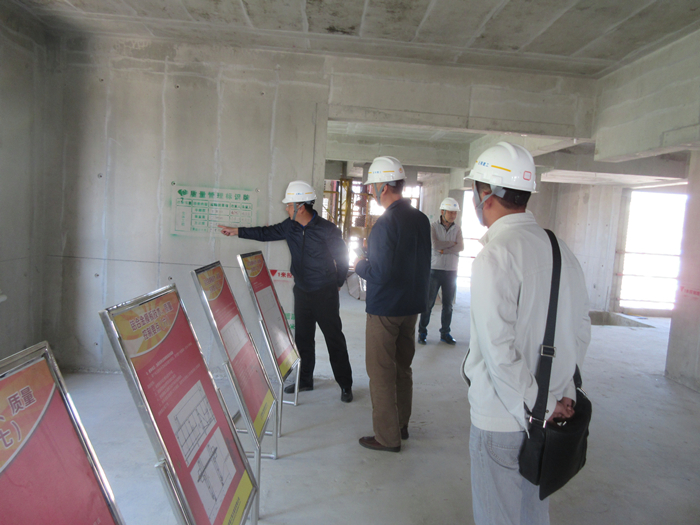 吳志鑫向彭楠一行詳細(xì)介紹了龍潤(rùn)園一期項(xiàng)目建設(shè)情況,并陪同到現(xiàn)場(chǎng)進(jìn)行了實(shí)地參觀。彭楠一行對(duì)第三直管項(xiàng)目部?jī)?yōu)良的項(xiàng)目管理和優(yōu)質(zhì)的項(xiàng)目實(shí)體質(zhì)量表示贊賞,并詢問了一些技術(shù)及管理問題,表示將進(jìn)一步加強(qiáng)交流,尋求合作。