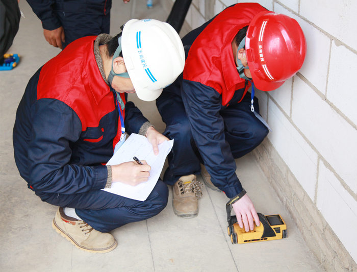 競賽歷時一天,共有來自18個直管部的108名參賽選手參加,按照比賽規(guī)則分為A、B兩組,每組三人。比賽地點設(shè)置在興冶廣場建設(shè)項目一標段一棟號5樓,設(shè)有6個比賽工位。參賽選手們摩拳擦掌,賽前仔細檢查設(shè)備,在裁判“開始競賽”的口令后,迅速進入比賽狀態(tài)。檢測樓板厚度、激光測量距離、混凝土鋼筋的進一步檢測……每一步,都要精準。他們不慌不忙,分工明確,一個人測量,一個人記錄數(shù)據(jù),另一個人則根據(jù)測量的數(shù)據(jù)進行計算。裁判們也以嚴謹?shù)膽B(tài)度和“公平、公正、公開”的原則認真記錄。比賽時,常常有陣陣涼風(fēng)透過未封的單側(cè)墻面,朝競賽人員和裁判呼嘯而來,但他們絲毫不受影響,現(xiàn)場充滿了愛崗敬業(yè)、鉆研技術(shù)的濃厚氛圍。