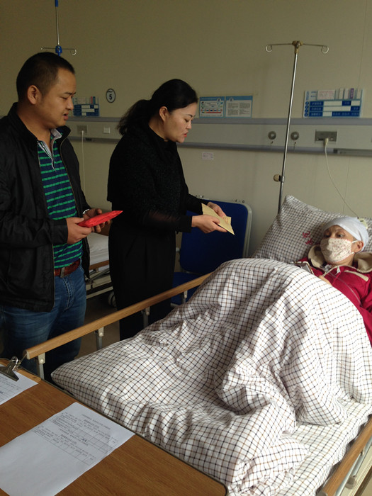 技術(shù)支持: 方森科技 9月17日上午,公司工會(huì)常務(wù)副主席何君、第六直管項(xiàng)目部書記楊峰等一行人來到云南省腫瘤醫(yī)院看望了公司第六直管部海外職工姜建明患病的妻子,并送上了慰問金,其中包括集團(tuán)工會(huì)及公司工會(huì)慰問金5000元,第六直管項(xiàng)目部愛心捐款19070元,共計(jì)24070元。