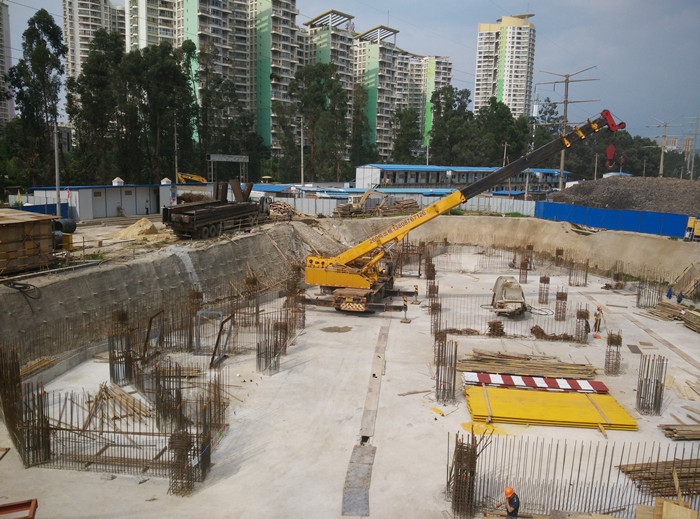 50噸汽車吊被吊運(yùn)至基坑內(nèi)