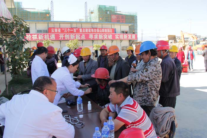潘紅偉一行在參觀省級重點(diǎn)項(xiàng)目保山職教園區(qū)(保山中等專業(yè)學(xué)校)施工現(xiàn)場后,充分肯定并感謝廣大一線建設(shè)者為保山城市建設(shè)發(fā)展所做出的貢獻(xiàn),為大家不畏辛勞,甘于奉獻(xiàn)的精神感到欣慰,并致以廣大一線工友新春佳節(jié)最良好的祝福。他希望大家再接再厲為保山發(fā)展做出新的更大的貢獻(xiàn)。并為175名職工發(fā)放慰問品,為10名先進(jìn)職工、15名困難職工另發(fā)放慰問金。隨后潘紅偉和陳自鋒為項(xiàng)目“流動職工書屋”揭牌。在慰問活動中,慰問組還邀請了保山市人民醫(yī)院專家為一線職工開展義診活動。切實(shí)把黨的真切關(guān)懷、深情厚誼送到了一線職工和農(nóng)民工的心坎上。