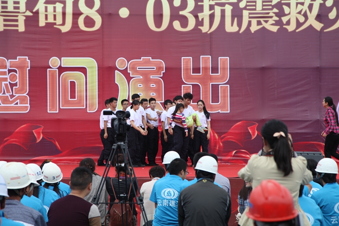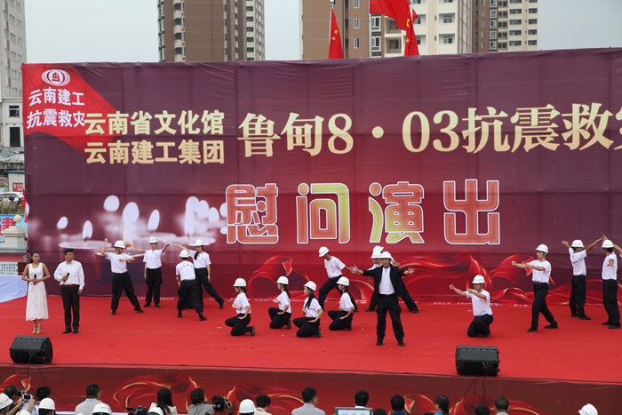 9月20日,集團(tuán)與省文化館在昭通市昭陽區(qū)2012年保障房項(xiàng)目部聯(lián)合舉辦的抗震救災(zāi)文藝演出。慰問演出中,參演節(jié)目精彩紛呈,舞蹈、獨(dú)唱、小品、雜耍等節(jié)目各具特色,彰顯了建工人高原鐵軍的精神。