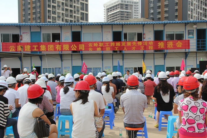 2014年6月4日,集團公司工會在云南工程建設(shè)總承包公司潤城四區(qū)18號A1—9地塊召開“一活動一工程”現(xiàn)場推進會。五公司被定為集團工會首批“一活動一工程”示范單位,并接受授牌。工會主席史呈森在推進會上做了交流發(fā)言。