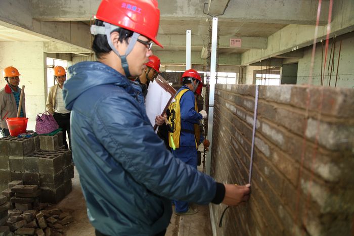 本次比賽于10月28日展開,歷時三天,比賽設(shè)置設(shè)測量工和砌筑工兩個工種。在經(jīng)過前期擇優(yōu)選拔的基礎(chǔ)上,每個工種公司各派三名技術(shù)能手參加比賽。測量工競賽須經(jīng)過理論考試和技能操作考試兩項環(huán)節(jié)的測試,并按雙百分制合并計算總成績排名次,因此暫時未出成績。砌筑工免理論考試,只進(jìn)行技能實際操作比賽,按實際操作成績排名次。砌筑工職業(yè)技能競賽設(shè)一、二、三等獎各一名。