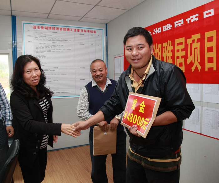 會議宣讀了《清水佳湖雅居項(xiàng)目第一期督導(dǎo)專報(bào)》,通報(bào)了清水佳湖雅居項(xiàng)目8月目標(biāo)節(jié)點(diǎn)完成情況和公司的獎勵決定。此次節(jié)點(diǎn)考核中,清水佳湖雅居項(xiàng)目完成了第一節(jié)點(diǎn)目標(biāo)的80%,公司對清水佳湖雅居項(xiàng)目部管理人員獎勵4萬8千元,對兩個(gè)勞務(wù)公司分別獎勵8萬元,此次獎勵共計(jì)20萬零8千元。同時(shí),會議也提出了9月節(jié)點(diǎn)目標(biāo)考核內(nèi)容,希望項(xiàng)目部及勞務(wù)公司相互配合,在規(guī)定時(shí)間內(nèi)完成9月節(jié)點(diǎn)目標(biāo)。