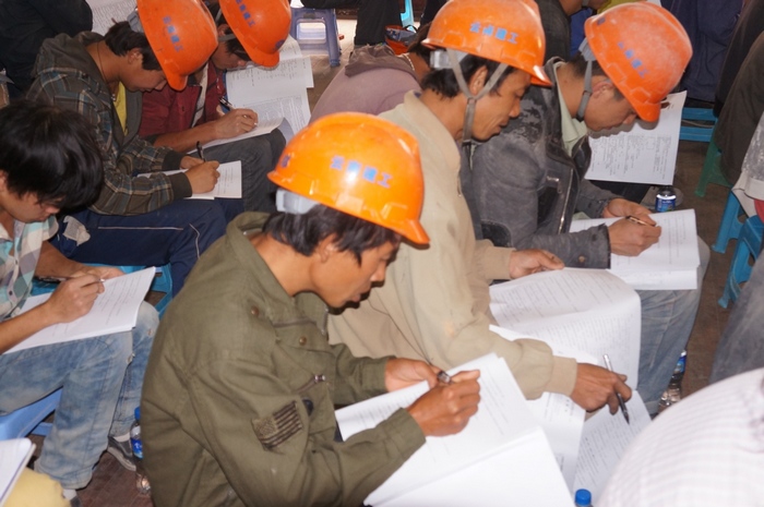 根據(jù)云南建工集團培訓(xùn)中心2013年對農(nóng)民工專業(yè)技能培訓(xùn)取證的要求,項目部提前租借了河北社村委會會堂作為培訓(xùn)地點,邀請了集團培訓(xùn)中心的老師進行授課,直管部主要領(lǐng)導(dǎo)也參與了培訓(xùn)活動。