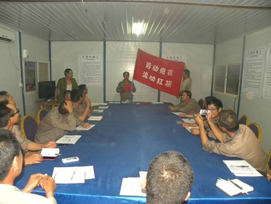 “紅旗班組”每周評(píng)比一次,“崗位先鋒”每月評(píng)比一次,由競(jìng)賽活動(dòng)領(lǐng)導(dǎo)小組負(fù)責(zé)組織評(píng)比。每周評(píng)出“紅旗班組”2個(gè),每月評(píng)出“崗位先鋒”13名,項(xiàng)目部每周召開(kāi)一次勞動(dòng)競(jìng)賽表彰會(huì),對(duì)“紅旗班組”和“崗位先鋒”進(jìn)行表彰獎(jiǎng)勵(lì)。截止目前,勞動(dòng)競(jìng)賽活動(dòng)共表彰獎(jiǎng)勵(lì)“紅旗班組”15個(gè)次,“崗位先鋒”26人次。