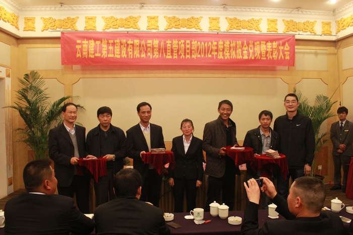 第八直管項目部本次兌現(xiàn)和獎勵的金額共計220萬余元,對在2012年繳納了模擬股金的50余名職工進(jìn)行兌現(xiàn),對2012年業(yè)績突出、工作表現(xiàn)較好的48名員工、4名優(yōu)秀通訊員、1名優(yōu)秀團(tuán)干事、1名優(yōu)秀工會干事進(jìn)行獎勵。由于部分員工還堅守在綏江項目部,作為領(lǐng)獎代表的項目經(jīng)理直呼“簽字好累,獎狀太多拿不動?!贝蠹覛g聲笑語,共享發(fā)展成果。
