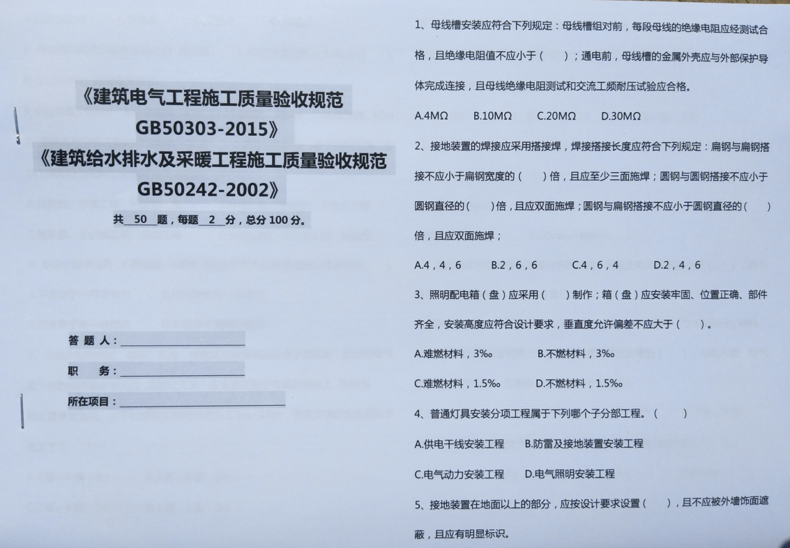 施工質(zhì)量驗(yàn)收規(guī)范試題