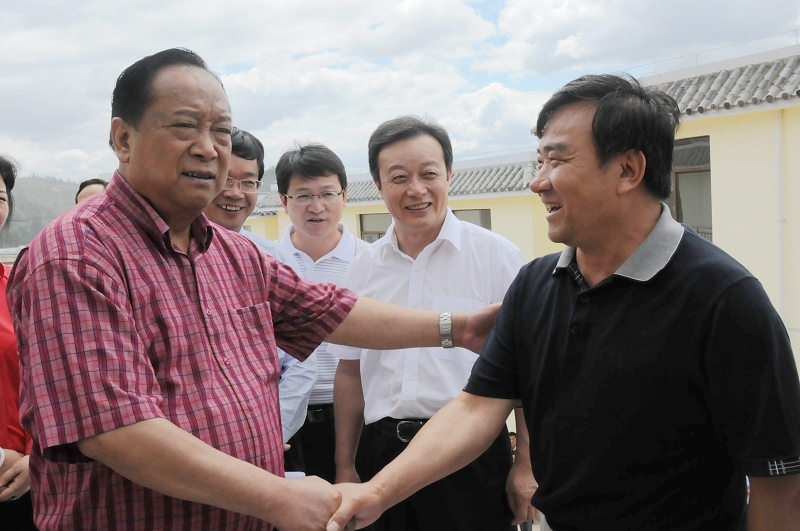 省委常委、紀(jì)委書(shū)記李漢柏(左)與公司董事長(zhǎng)、黨委書(shū)記楊福和(右)交談時(shí)場(chǎng)景