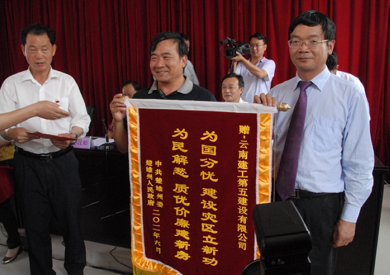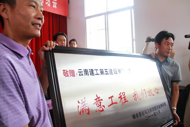正是懷著這樣崇高的使命感和責(zé)任感,他們一步一個(gè)腳印地走到了最后,楚雄州州委、州政府為他們送上一面錦旗,說(shuō)他們“為國(guó)分憂為民解愁”。楚雄州姚安縣委、縣政府為他們獻(xiàn)上一塊牌匾——建筑“鐵軍”,放心工程。官屯村的村民們?yōu)樗麄儷I(xiàn)上一塊牌匾——滿意工程,我們放心。或者就是因?yàn)樗麄冏杂X(jué)地把百姓利益與國(guó)企責(zé)任聯(lián)系在了一起,才贏得了來(lái)自社會(huì)各界那么多的肯定,而這也恰恰成了他們?cè)谶@個(gè)七•一為我們的黨獻(xiàn)上的,最美好的禮物!