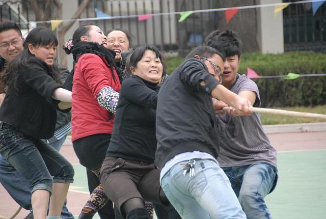 就在大家都以浪漫、溫情的方式慶祝“三·八”的時候,機關卻以一種力量的方式來慶祝這個節(jié)日,3月8日這天下午,機關舉行了一場別開生面的拔河賽。各部室人員摩拳擦掌,比賽一開始就把氣氛推向了高潮,口號聲、加油助威聲、參賽隊員鞋子與地面的摩擦聲不絕于耳,平日里踩著高跟鞋的女職工們也都換上了運動鞋,和男職工一塊齊驅作戰(zhàn),以巾幗不讓須眉的姿態(tài)度過了“三八”節(jié)。