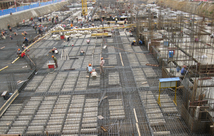 現(xiàn)澆鋼筋混凝土空心樓蓋技術(shù)是2005年7月建設(shè)部在全國推廣使用的一項新技術(shù),該樓板是無明梁的空心樓板,暗梁、勒梁相當(dāng)多,對于五公司來說空心樓板施工是第一次,怎么辦?作為項目總工的白建萍陷入了沉思,無論如何總要有第一個吃螃蟹的人。經(jīng)過設(shè)計院推薦,他們組織工長、主工長、操作班組負(fù)責(zé)人到新都昌調(diào)研觀摩,到云南省唯一的廠家——云南艾瑞克建筑材料有限公司了解學(xué)習(xí)現(xiàn)澆鋼筋混凝土空心樓蓋技術(shù),但是根據(jù)廠家的技術(shù)人員介紹,這種管模質(zhì)量很輕,所以施工過程中首先必須解決抗浮力的問題,不僅要防止水平位移,還要防止豎向上浮,因為混凝土下去之后如果管子的浮力大,管子浮起來就會把整塊頂板上層鋼筋頂起來,最終導(dǎo)致把整塊頂板頂起來,造成嚴(yán)重的樓板質(zhì)量問題。另外還要解決的就是下部的問題,如果管子的間距控制不好,就會造成混凝土粗骨料下不去,混凝土澆筑完凝固收縮之后,整個下面就全部是水泥漿,同樣會造成樓板質(zhì)量問題。針對這些問題,通過與艾瑞克公司多方溝通,在廠家給直一部提供了一些技術(shù)措施的基礎(chǔ)上,項目部進行了深入細(xì)致的研究,結(jié)合現(xiàn)場施工實際進行改進,最后確定:在板底下層鋼筋扎好之后,把小梁和勒梁分為網(wǎng)格狀,再把水泥波纖管模排放在里面,管模兩端用鐵絲固定在下層鋼筋上防止水平位移;對于上浮問題,則按800mm間距把梁筋固定在模板上,然后再把模板固定在下面支撐架體上,小梁、勒梁主筋與主梁主筋再焊接固定,形成一個整體,阻止管模上浮,最后再在管模兩端上部垂直方向設(shè)置直徑12mm的抗浮鋼筋,再來扎上層鋼筋。通過這些措施,直一部第三城•丹槿園項目現(xiàn)澆鋼筋混凝土空心樓蓋施工取得了較好的效果,沒有出現(xiàn)任何質(zhì)量問題。從建設(shè)方的角度來說這種空心樓蓋技術(shù)減少了投資,但是對于施工方來說,卻增加了較大的施工難度,工序復(fù)雜,比正常的實心樓板施工復(fù)雜很多,“在空心樓蓋施工過程中,我們的工期想搶都搶不回來?!卑捉ㄆ颊f道。由于是第一次摸索施工,他們的第一塊空心樓蓋施工從支模、扎鋼筋、排管模到澆筑混凝土,足足用了25天時間,比普通樓板施工花的時間5倍還多,比正?,F(xiàn)澆空心樓蓋施工時間3倍還多??上攵麄兺度肓硕嗌俚臅r間和精力。在直一部施工的2萬多平方米地下室頂板中,有近1.7萬平方米的空心樓板,用了近5萬根標(biāo)準(zhǔn)空心管模。盡管工作量大,工序復(fù)雜,工期緊,直一部想盡辦法,加班加點,40多天時間完成了全部地下室頂板的施工?!斑@段時間以來,整個項目班子24小時守在工地上,加上道路有限,材料堆放場地狹窄,所以,我們要克服的困難很多。”白建萍說?!爱?dāng)時,由于工期等原因,施工已經(jīng)無法形成流水,最終就形成了平行施工。那時,現(xiàn)場6臺塔吊每天24小時作業(yè)。”石磊也感嘆道。由于形成平行施工,他們必須組織大量的勞動力和材料進場才能滿足現(xiàn)場的需要,在喬元勞務(wù)公司的支持下,每天現(xiàn)場操作人員平均達到500余人,多的時候700余人,一眼看去整個施工現(xiàn)場密密麻麻幾乎都是人。人是進來了,材料不進場進度一樣上不去,而場地又那么狹窄,幾乎沒有堆放的場地,這種情況下,材料是不可能先進場了。但是,進度卻必須趕上去,承諾必須兌現(xiàn)。面對挑戰(zhàn),他們沒有退縮,挑戰(zhàn)就是機遇,抓住機遇就抓住了市場。項目部實行材料計劃兩天一報,材料到場現(xiàn)到、現(xiàn)下、現(xiàn)用。人累點,但進度上去了,值!