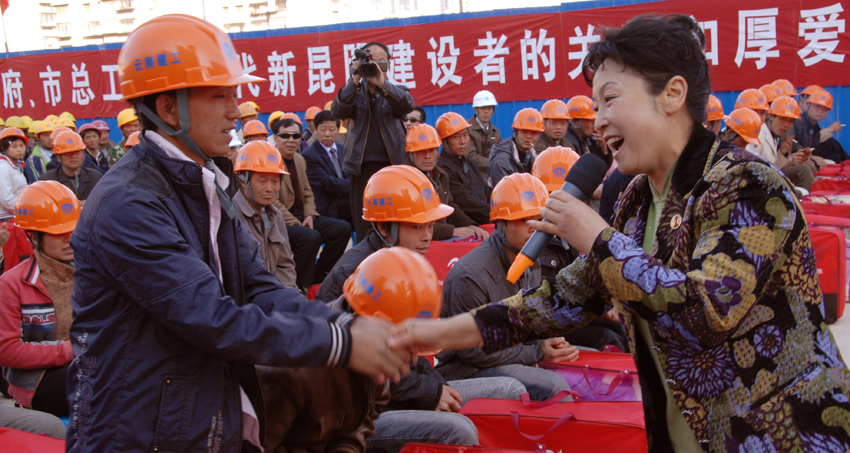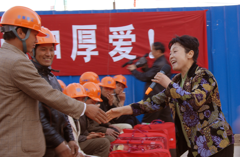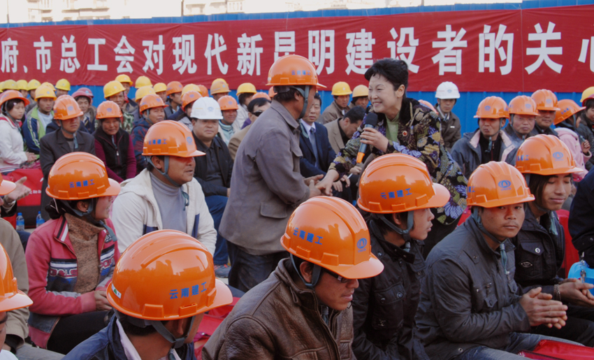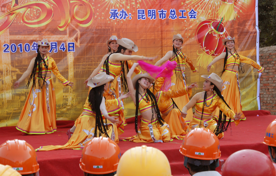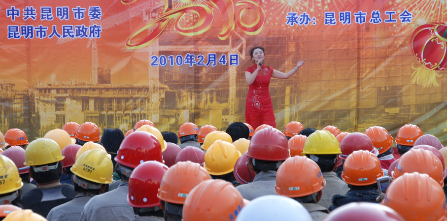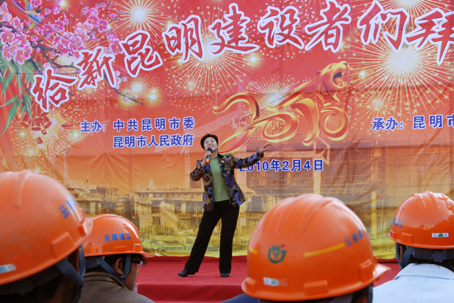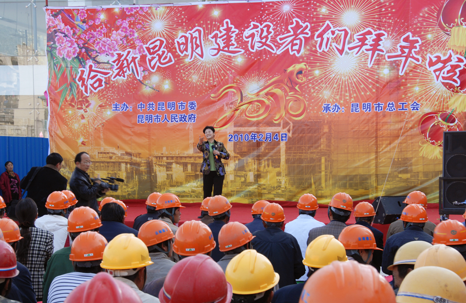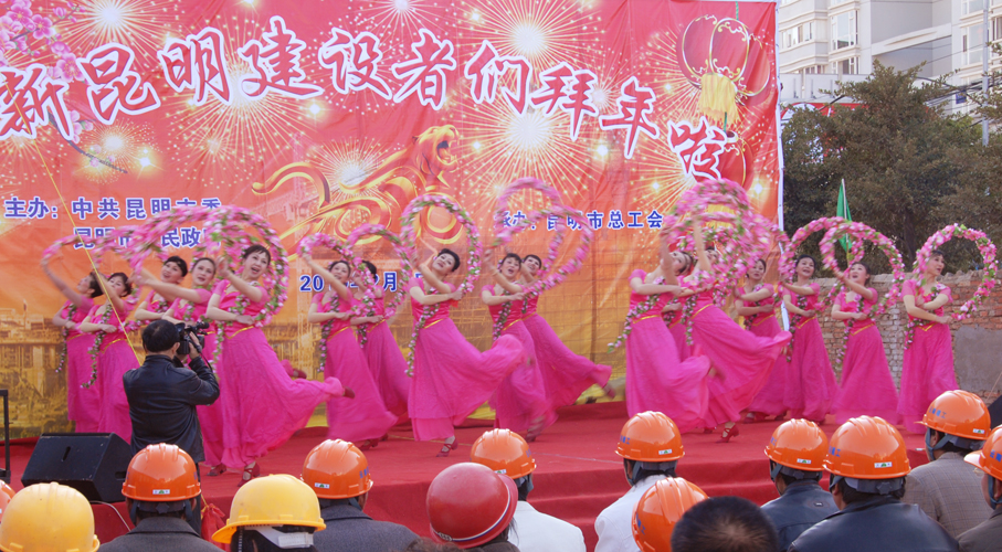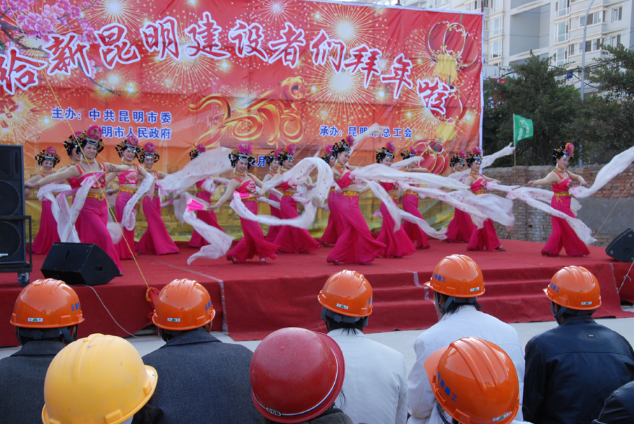 2月4日上午,受昆明市委、市政府委托,昆明市總工會(huì)主席楊麗等領(lǐng)導(dǎo)同志率團(tuán)到云南建工第五建設(shè)有限公司昆明工人文化宮建設(shè)工地,給包括農(nóng)民工在內(nèi)的新昆明建設(shè)者拜年,給建設(shè)者送來新春的祝福和溫暖的禮品。楊麗主席和工會(huì)干部以及昆明市楓葉職工藝術(shù)團(tuán)的演員們分別獻(xiàn)上精彩的歌舞。