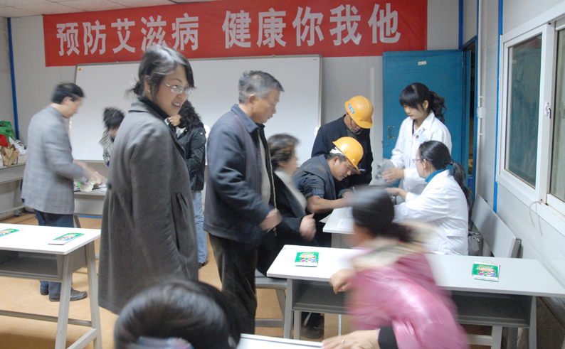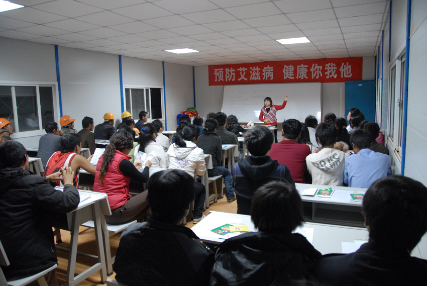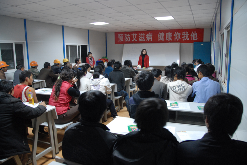 五建公司工會(huì)、計(jì)劃生育協(xié)會(huì)和五華區(qū)社區(qū)服務(wù)站于11月27日晚在公司昆明新機(jī)場(chǎng)項(xiàng)目部農(nóng)民工業(yè)余學(xué)校舉辦防治艾滋病講座,并義務(wù)開(kāi)展健康咨詢(xún).
