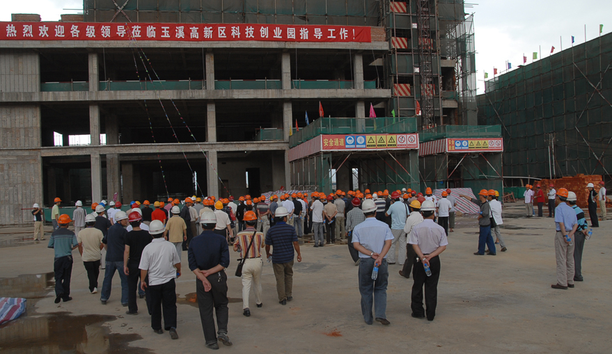 其中,一分公司玉溪高新區(qū)科技創(chuàng)業(yè)園工程項(xiàng)目部在安全施工教育、安全生產(chǎn)制度建立、安全生產(chǎn)監(jiān)督檢查、安全標(biāo)志和安全設(shè)施配置等各方面,進(jìn)一步加強(qiáng)安全施工管理,受到了當(dāng)?shù)亟ㄔO(shè)管理部門和甲方的高度評價(jià)。6月24日,玉溪市建設(shè)局組織玉溪市及所屬五縣一區(qū)建設(shè)局及安監(jiān)、質(zhì)監(jiān)、監(jiān)理單位和160多個(gè)三級(jí)以上資質(zhì)的施工企業(yè)人員共250多人,到云南建工五建一分公司施工的玉溪高新區(qū)科技創(chuàng)業(yè)園工程項(xiàng)目部工地觀摩學(xué)習(xí)。