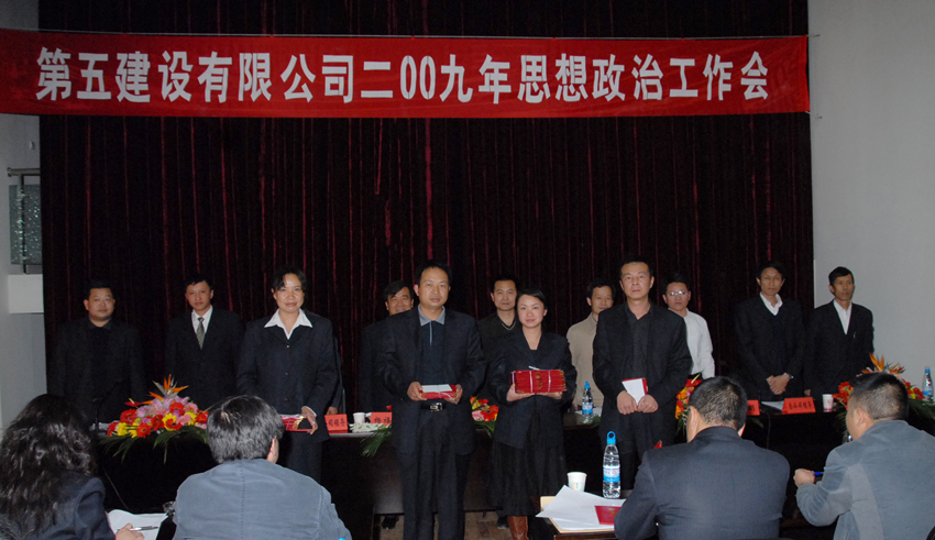 五建設(shè)有限公司思想政治工作會(huì)于2009年3月3日召開(kāi)。會(huì)議對(duì)上年度公司思想政治工作進(jìn)行了總結(jié),根據(jù)集團(tuán)和公司職代會(huì)精神,對(duì)今年工作作出安排。對(duì)2008年度職工思想政治工作研究先進(jìn)集體、優(yōu)秀論文作者、新聞報(bào)道工作先進(jìn)單位和先進(jìn)個(gè)人進(jìn)行了表彰。結(jié)合今年公司工作目標(biāo)確定并下發(fā)了加強(qiáng)宣傳報(bào)道工作實(shí)施辦法和當(dāng)前職工思想政治工作研究參考選題。