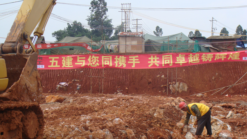 這批人工挖孔樁、嵌巖基礎(chǔ)工程,大部分是位于巖溶地帶,巖石層、破碎巖層與粘土混雜在一起,開挖極其困難。關(guān)鍵時刻,五建公司果斷決策,決心再難啃的硬骨頭也要啃下來,為云南建工爭光、為云南的建筑施工企業(yè)爭氣。