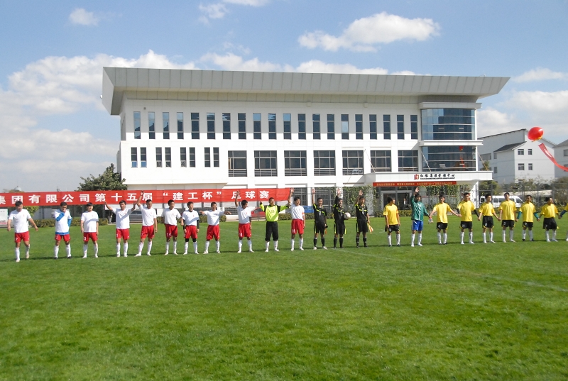 為全力備戰(zhàn)此次比賽,公司在10月17日正式成立足球隊(duì),協(xié)調(diào)各方后開(kāi)始進(jìn)行為期半個(gè)多月的封閉式訓(xùn)練。雖然公司在首場(chǎng)比賽中憾輸六公司代表隊(duì),但憑借小組賽中兩勝一負(fù)一平的成績(jī)出線(xiàn),淘汰賽中淘汰設(shè)計(jì)院進(jìn)入四強(qiáng),四強(qiáng)賽中打敗六公司,最終進(jìn)入決賽并獲得冠軍。