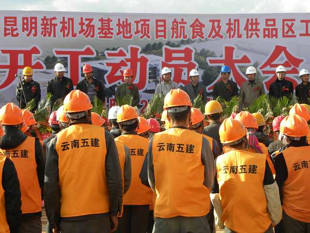 2月18日,由公司承建的東航昆明新機(jī)場基地項(xiàng)目航食及機(jī)供品區(qū)工程在施工現(xiàn)場舉行開工動(dòng)員大會(huì),公司總經(jīng)理方菊明、總工程師焦倫杰、總經(jīng)理助理史呈森、安全總監(jiān)劉路明到會(huì)參加開工典禮,方菊明代表公司在大會(huì)上致辭。
