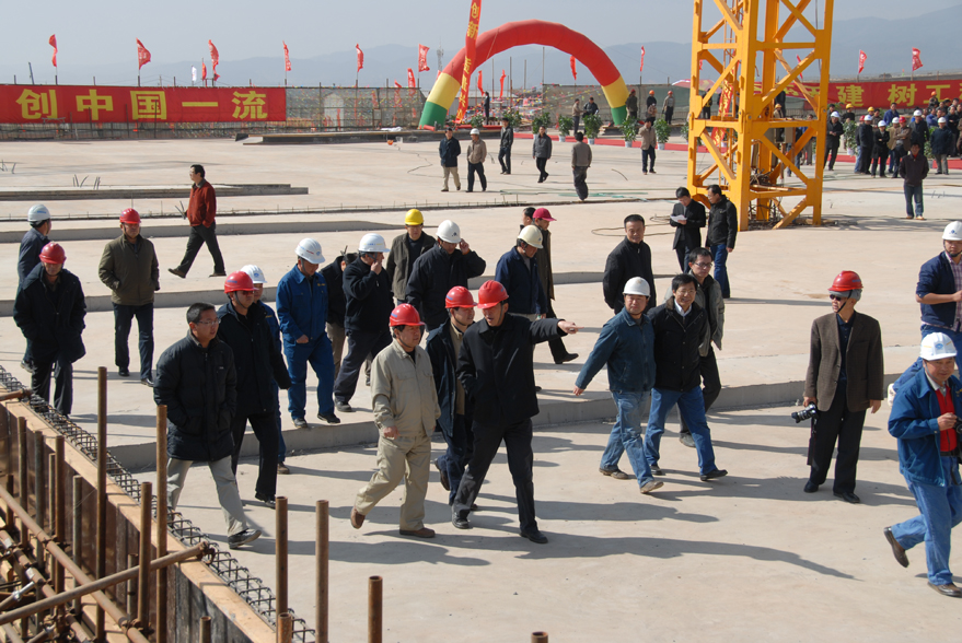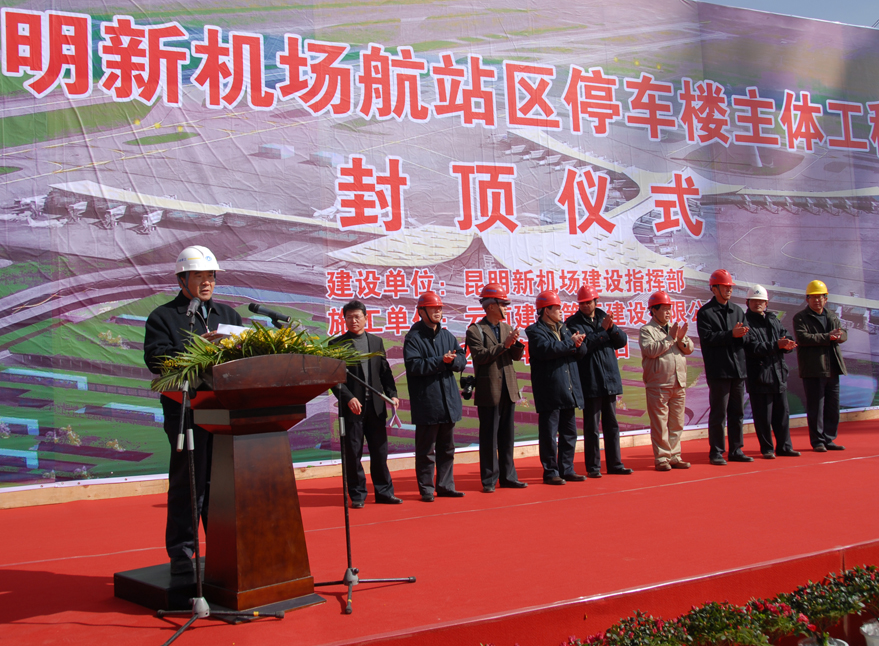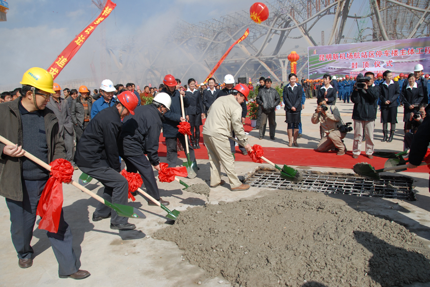 省政府副秘書(shū)長(zhǎng)、昆明新機(jī)場(chǎng)建設(shè)指揮部指揮長(zhǎng)吳凡宣布停車(chē)樓主體工程封頂,并率領(lǐng)建設(shè)、施工、設(shè)計(jì)、監(jiān)理、質(zhì)監(jiān)等各方領(lǐng)導(dǎo)鏟混凝土為停車(chē)樓封頂。