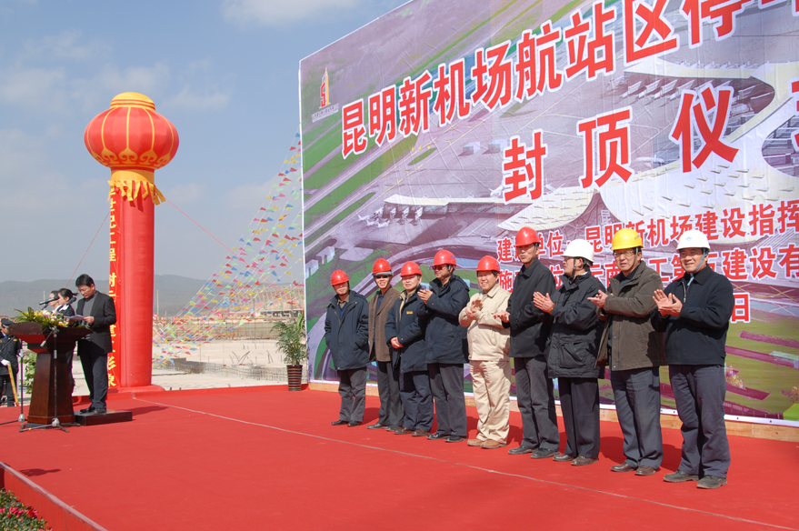 集團(tuán)新機(jī)場(chǎng)指揮部領(lǐng)導(dǎo)、五建設(shè)有限公司領(lǐng)導(dǎo)成員及各有關(guān)單位各部門(mén)主要領(lǐng)導(dǎo)、昆明新機(jī)場(chǎng)項(xiàng)目部成員和參見(jiàn)員工等參加了封頂儀式。