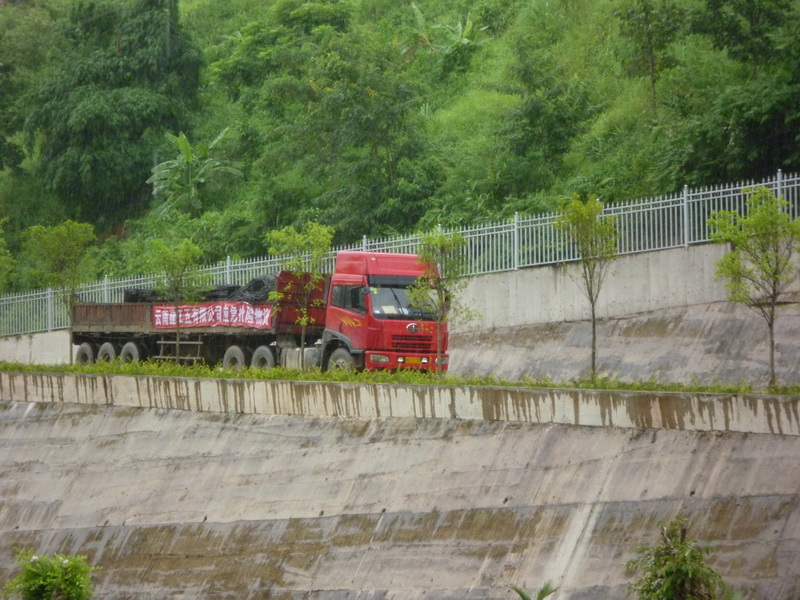 今天,共有10輛運輸車陸續(xù)發(fā)出,中午,得知有兩輛運輸車拋錨,正在緊急搶修。公司紀委書記謝海健、材料供應部經(jīng)理殷勇南趕到搶險現(xiàn)場。到下午6點,到場車輛6輛,剩余4輛在距離現(xiàn)場20-100公里范圍內,現(xiàn)場下起大雨,進場道路本來就坡陡彎急,雨后更加泥濘濕滑,加之天色已晚,為了安全起見,在請示集團現(xiàn)場領導后,我們向最后4輛運輸車下達了在距現(xiàn)場20公里位置休息,天亮后再進現(xiàn)場的指令。