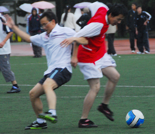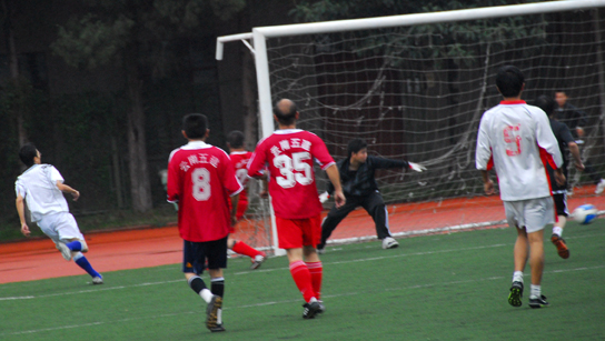 在晚秋的霏霏細(xì)雨中,五建五分公司與公司機(jī)關(guān)于11月4日舉行了一次足球友誼賽,活躍職工業(yè)余文化生活,增進(jìn)友誼。 伍軒 攝影