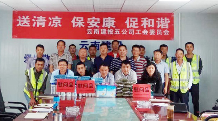 5月23日,近40度的高溫下,公司副總經(jīng)理施文鐘帶隊奔赴第七直管項目部施工的蘭坪縣營盤鎮(zhèn)易地扶貧搬遷項目、蘭福公路項目調(diào)研,并代表公司領導班子,與公司工會人員開展“送清涼、保安康、促和諧”的送清涼慰問活動。