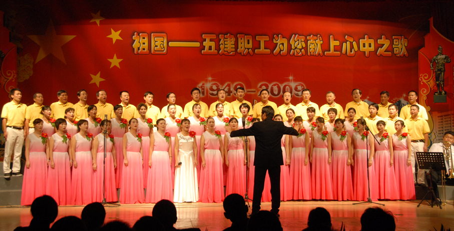 五建公司于9月28日晚在公司禮堂舉辦以《祖國――五建職工為你獻(xiàn)上心中的歌》為主題的文藝晚會,慶祝中華人民共和國建立六十周年。來自公司和基層22個單位的700多名在職及退休職工,共演出了19個節(jié)目,大家以飽滿的熱情祝福偉大的社會主義祖國,用嘹亮的歌聲抒發(fā)對偉大祖國的熱愛,以昂揚(yáng)的斗志表達(dá)實(shí)現(xiàn)公司跨越式發(fā)展的決心。